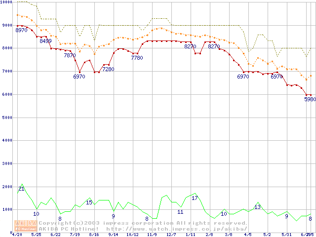 WD Protege (5400rpm,UltraATA/100)の最安値推移
