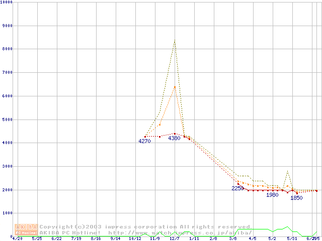 PC2700(DDR333) DDR SDRAM DIMMの最安値推移