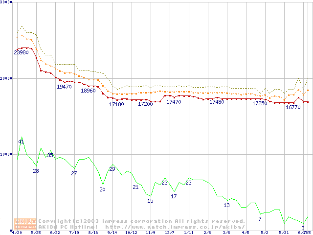 Pentium 4 1.80A GHz リテールパッケージの価格推移