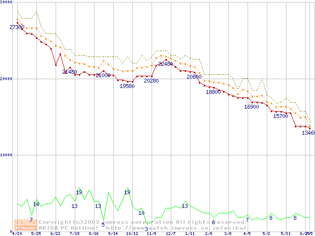 WD Caviar(Special Edition) (7200rpm,UltraATA/100,8MB)の最安値推移