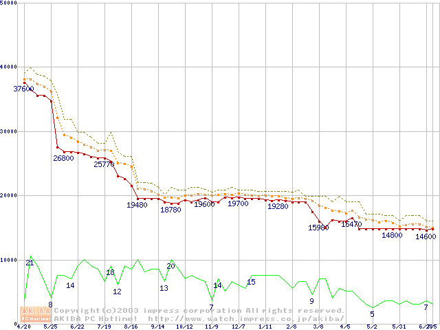 Athlon MP 2000+ (1.67GHz) リテールパッケージの価格推移