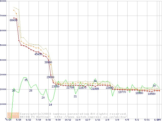Pentium 4 2.4B GHz リテールパッケージの価格推移