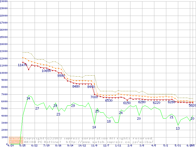 Celeron 1.40GHz FC-PGA2 リテールパッケージの価格推移