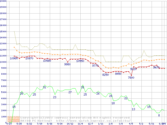 メモリ主要製品(最安値5千円~1万円未満)の最安値推移