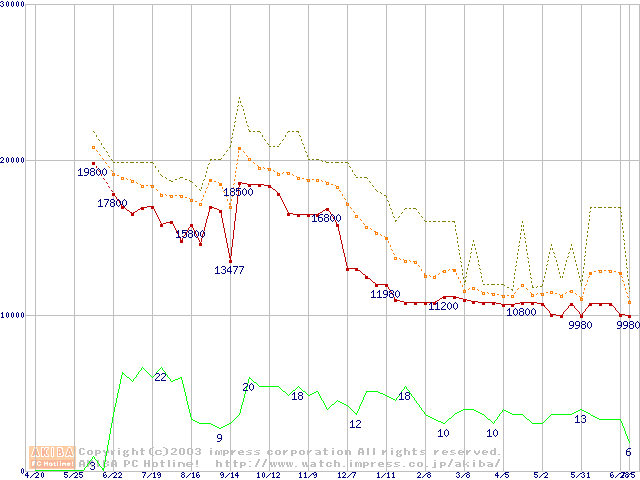 PC1066 DRDRAM RIMMの最安値推移