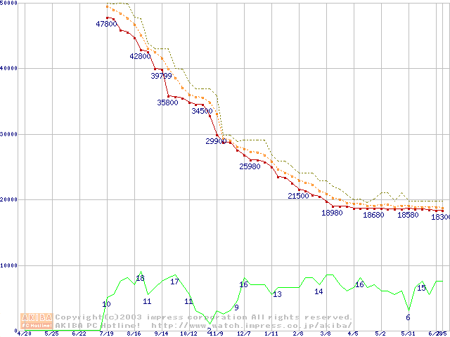 2.5インチHDD主要製品の最安値推移