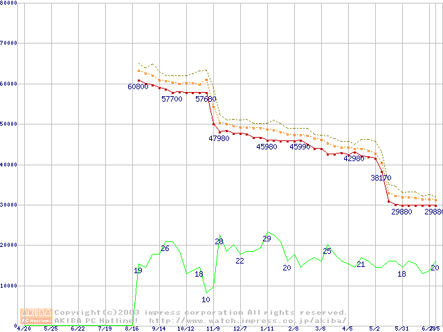 Pentium 4 2.80GHz リテールパッケージの価格推移