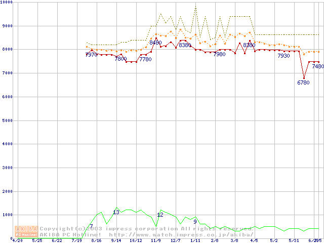 Jupitor (7200rpm,2MB,FDB,UltraATA/100)の最安値推移