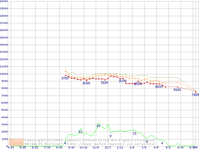 DiamondMax 16 (5400rpm,UltraATA/133,2MB,80GB/Platter,BB)の最安値推移
