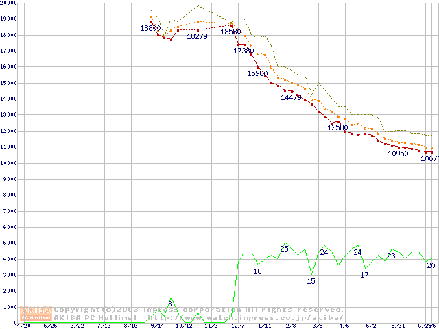 HDD主要製品の最安値推移
