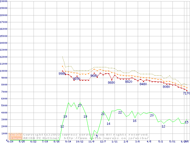 DiamondMax 16 (5400rpm,UltraATA/133,2MB,80GB/Platter,FDB)の最安値推移