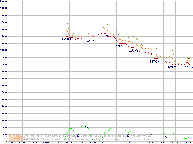 SpinPoint V60 (5400rpm,UltraATA/100,2MB)の最安値推移