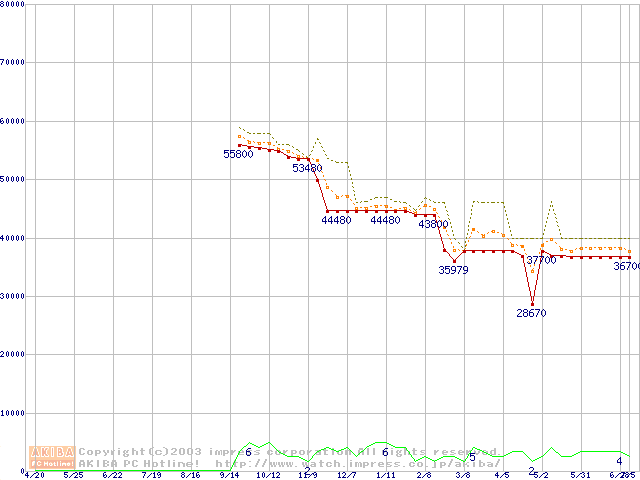 Socket 603 (micro-PGA,FSB 400MHz,L2 512KB,Prestonia)の最安値推移