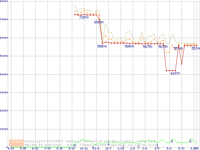 Socket 603 (micro-PGA,FSB 400MHz,L2 512KB,Prestonia)の最安値推移