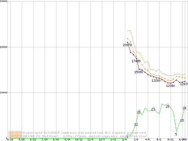Deskstar 180GXP (7200rpm,8MB,UltraATA/100,FDB)の最安値推移