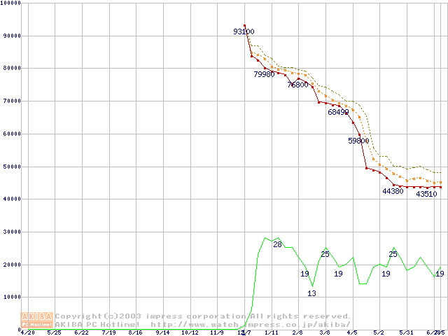 Pentium 4 3.06GHz リテールパッケージの価格推移