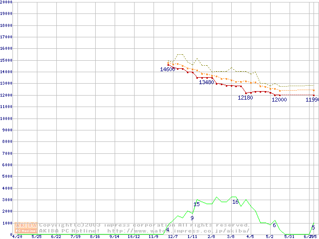 MHSシリーズ (9.5mm,4200rpm,UltraATA/100,2MB,FDB,30GB/Platter,FDB)の最安値推移