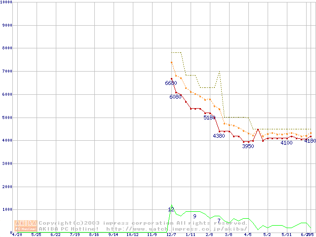 Socket 370 (PGA,FSB 100MHz,L2 64KB,Ezra)の最安値推移
