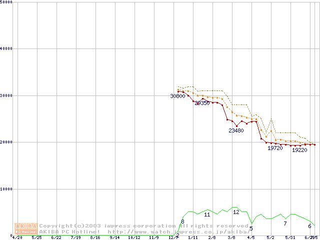 Socket A (OPGA,FSB 266MHz,L2 256KB,Thoroughbred)の最安値推移