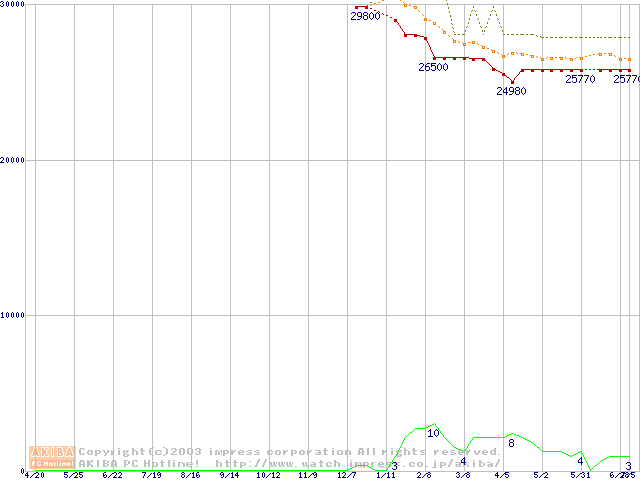 Socket 604 (micro-PGA,FSB 533MHz,L2 512KB,Prestonia)の最安値推移