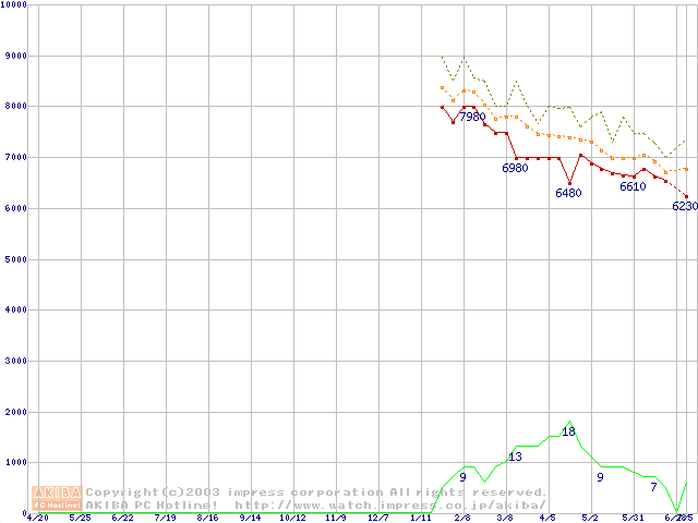 Socket A (OPGA,FSB 266MHz,L2 256KB,Thoroughbred)の最安値推移