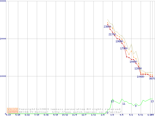 Socket A (OPGA,FSB 333MHz,L2 512KB,Barton)の最安値推移