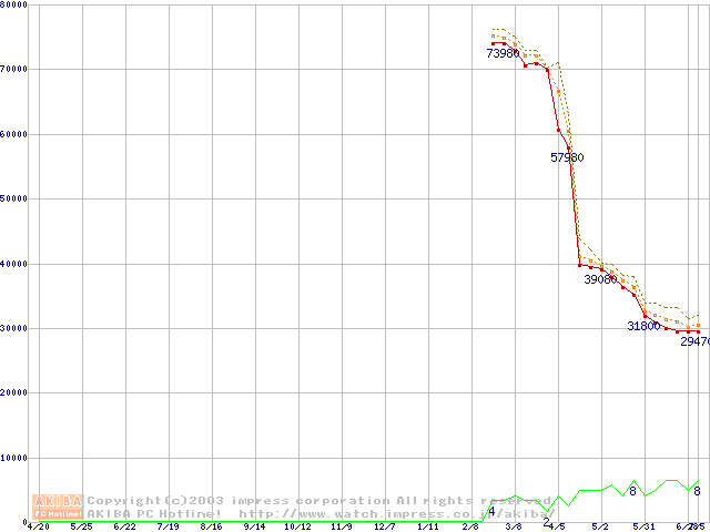 Socket A (OPGA,FSB 333MHz,L2 512KB,Barton)の最安値推移