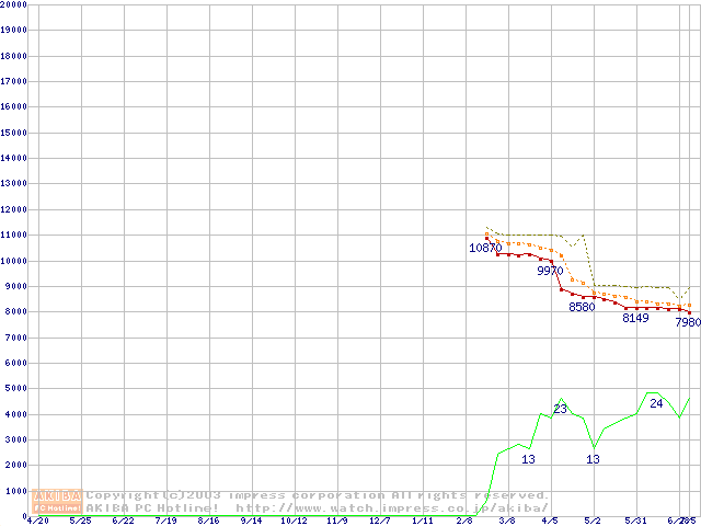 Athlon XP 2000+ (1.67GHz) リテールパッケージ(Thoroughbred)の価格推移
