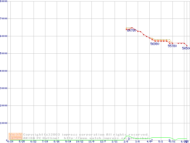 Xeon 2.80GHz(FSB533) リテールパッケージ(1U用)の価格推移