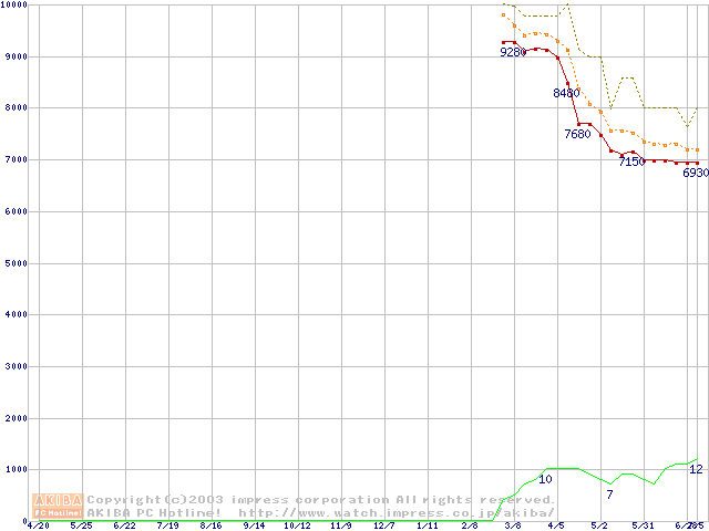 Socket A (OPGA,FSB 266MHz,L2 256KB,Thoroughbred)の最安値推移