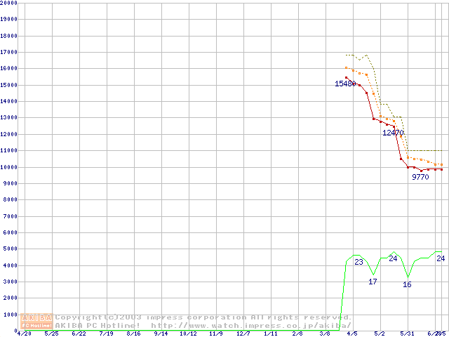 Socket 478 (micro-PGA,FSB 400MHz,L2 128KB,Northwood)の最安値推移
