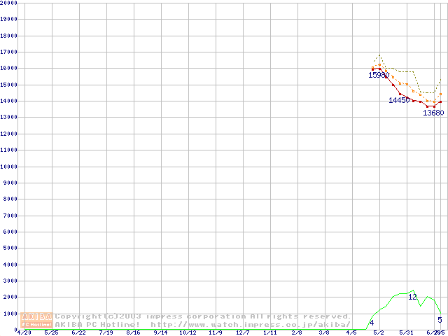 SpinPoint V80 (5400rpm,UltraATA/100,2MB)の最安値推移