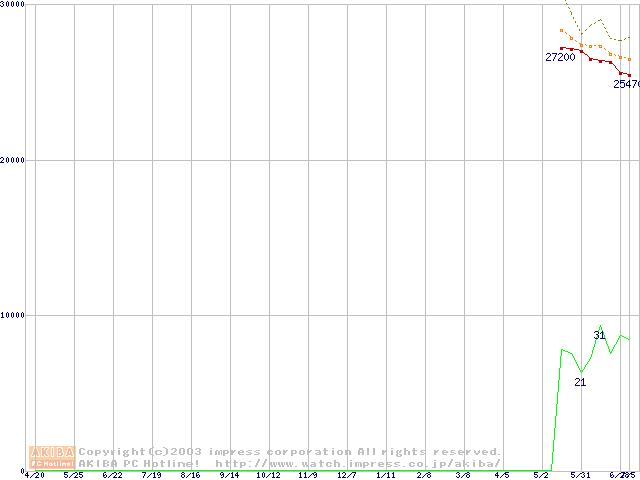 Socket 478 (micro-PGA,FSB 800MHz,L2 512KB,Hyper-Threading,Northwood)の最安値推移