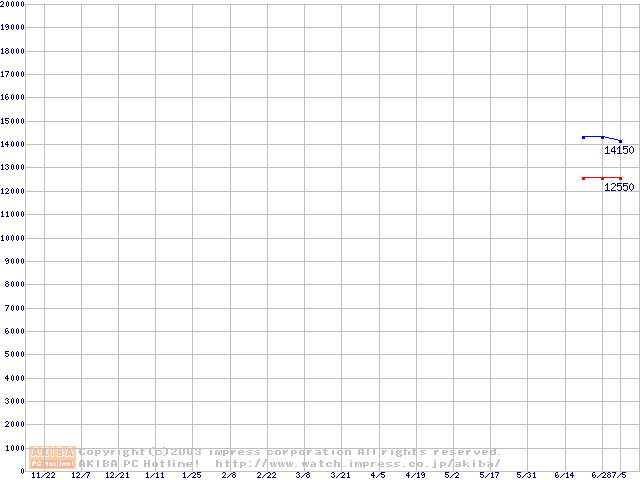 | [↑前グラフ]: | Travelstar 40GN (9.5mm,4200rpm,UltraATA/100,2MB,FDB,20GB/Platter)の最安値推移 |