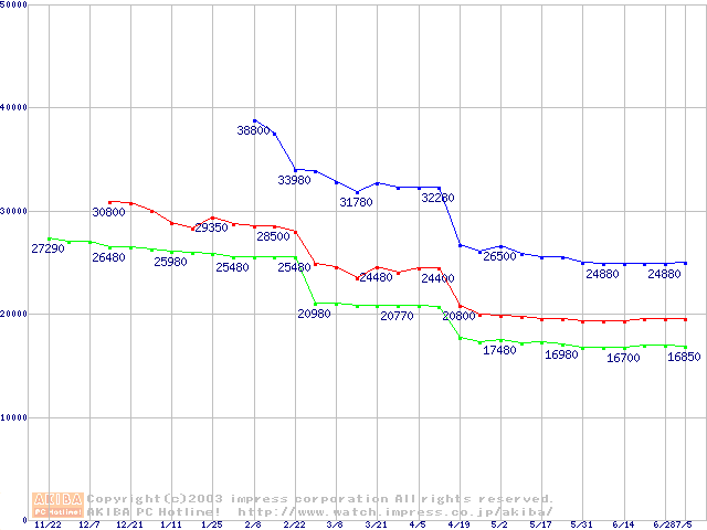 | [↓次グラフ]: | Socket A (OPGA,FSB 266MHz,L2 256KB,Palomino)の最安値推移 |