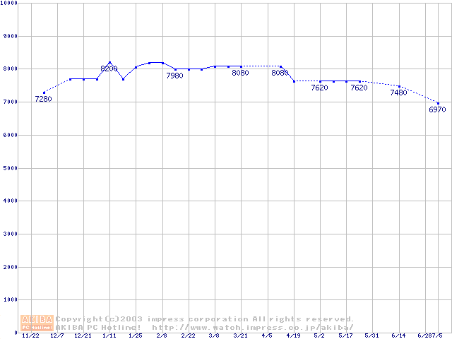 | [↓次グラフ]: | Socket A (PGA,FSB 266MHz,L2 256KB,Thunderbird)の最安値推移 |