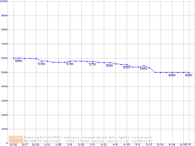 | [↓次グラフ]: | Socket A (PGA,FSB 200MHz,L2 256KB,Thunderbird)の最安値推移 |