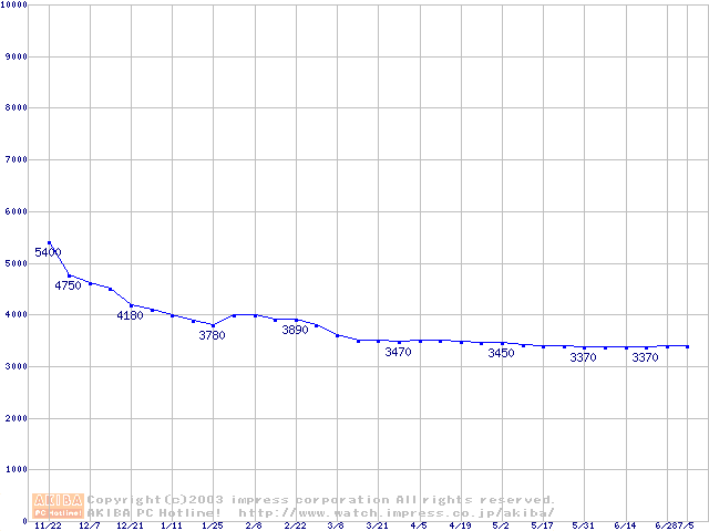 | [↓次グラフ]: | Socket A (PGA,FSB 200MHz,L2 64KB,Morgan)の最安値推移 |