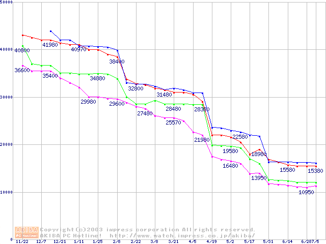 | [↓次グラフ]: | Socket A (OPGA,FSB 266MHz,L2 256KB,Thoroughbred)の最安値推移 |