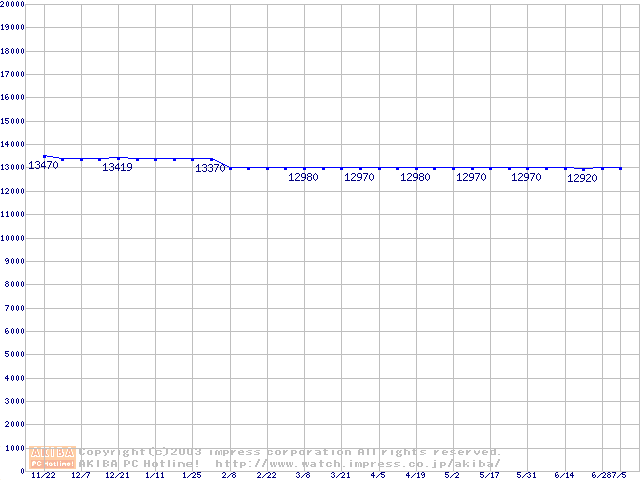| [↑前グラフ]: | Socket 370 (FC-PGA2,FSB 133MHz,L2 512KB,Tualatin)の最安値推移 |