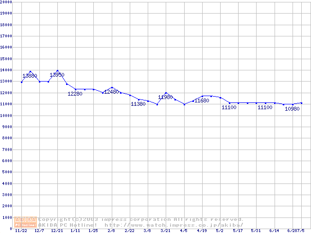 | [↑前グラフ]: | Socket 370 (FC-PGA2,FSB 133MHz,L2 256KB,Tualatin)の最安値推移 |