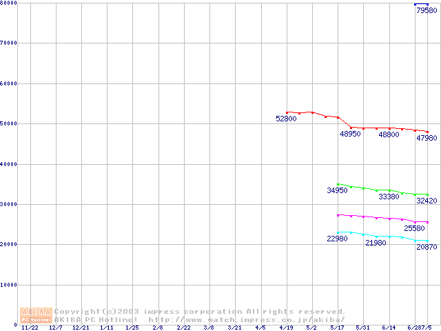 | [↓次グラフ]: | Socket 478 (micro-PGA,FSB 533MHz,L2 512KB,Hyper-Threading,Northwood)の最安値推移 |
