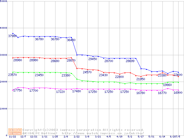 | [↑前グラフ]: | Socket 478 (micro-PGA,FSB 533MHz,L2 512KB,Northwood)の最安値推移 |
