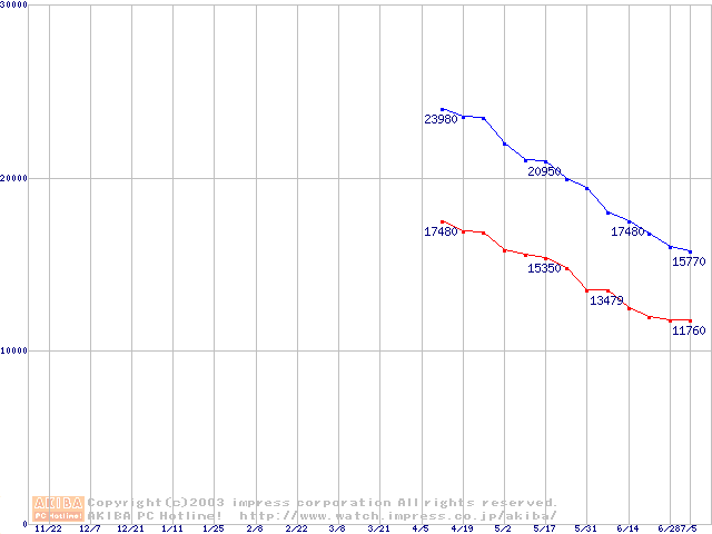 | [↓次グラフ]: | Barracuda 7200.7 (7200rpm,UltraATA/100,2MB,80GB/Platter,FDB)の最安値推移 |