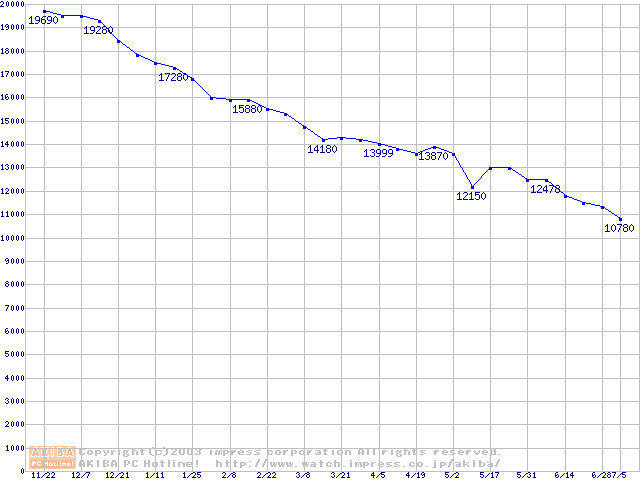 | [↓次グラフ]: | Barracuda ATA IV (7200rpm,UltraATA/100,2MB,40GB/Platter,FDB)の最安値推移 |