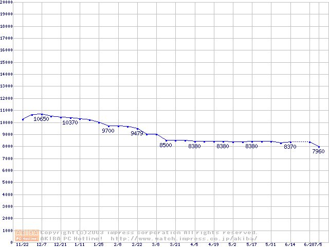 | [↓次グラフ]: | Barracuda 5400.1 (5400rpm,UltraATA/100,2MB,FDB)の最安値推移 |