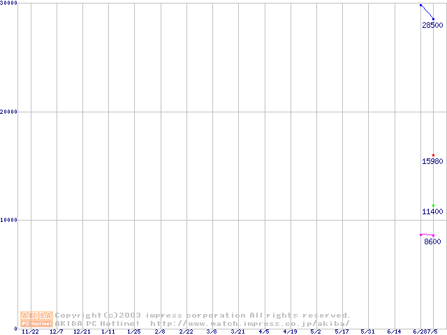 | [↑前グラフ]: | WD Caviar(Special Edition) (7200rpm,UltraATA/100,8MB)の最安値推移 |