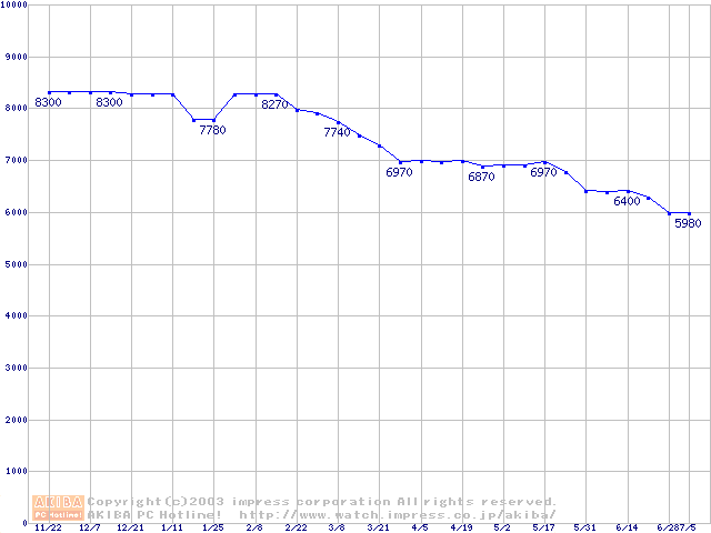 | [↑前グラフ]: | WD Caviar (5400rpm,UltraATA/100,2MB)の最安値推移 |