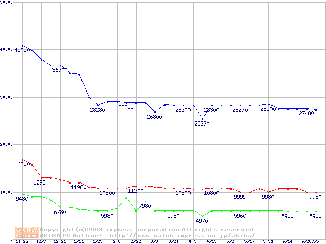| [↓次グラフ]: | PC1066 DRDRAM RIMM4200(32bit)の最安値推移 |