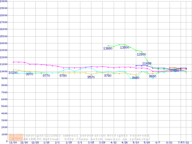 | [↓次グラフ]: | 2.5インチHDD 30GB~40GB未満(9.5mm厚)の最安値推移 |